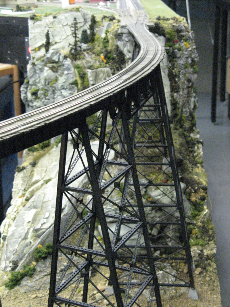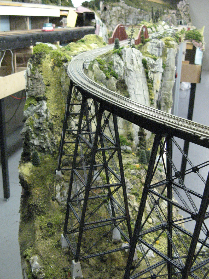 The permanent layout has a double track mainline to provide for operating multiple trains simultaneously, a section of track that was replaced with a rather interesting gauntlet bridge, has now been updated to dual trackage.