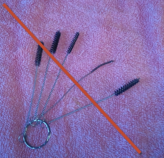 Inspect the needle, clean with a soft cloth and recommended cleaner. (I use Windex). Clean the tip with a Q tip if needed.It is not recommended to use any kind of stiff bristle cleaning kits on the market. These kits could compromise the seal area with a microscopic scratch and once this happens, your airbrush cannot be repaired and will void any warranty. These kits do more damage than good, and if you keep your airbrush properly cleaned, these cleaning kits will never be needed.