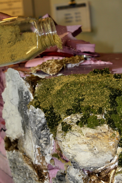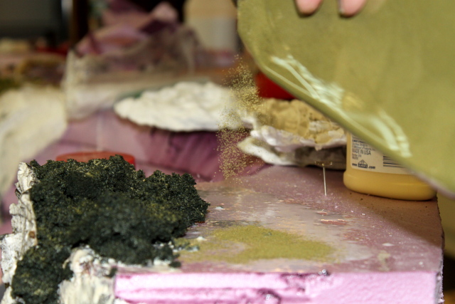 Adding turf to an area wetted with Elmer's Carpenter's Glue