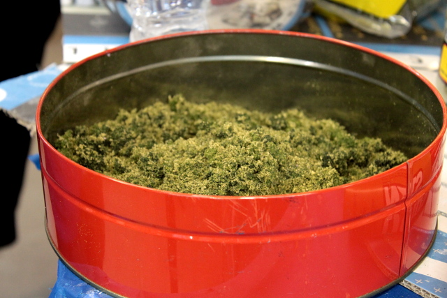 Preparing the raw mix starts with breaking up the clump foliage into smaller pieces